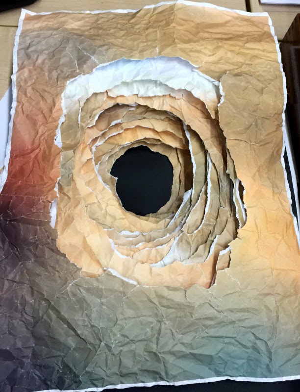 too faked, I spent about 2 hours printing out a yellow texture onto A3 bits of paper, then tore gradually smaller and smaller holes into each, scrunched them up into balls, squashed them flat again, scanned them in one at a time and assembled them in photoshop. The resulting papery mess is still on my desk - it looks kind of cool!